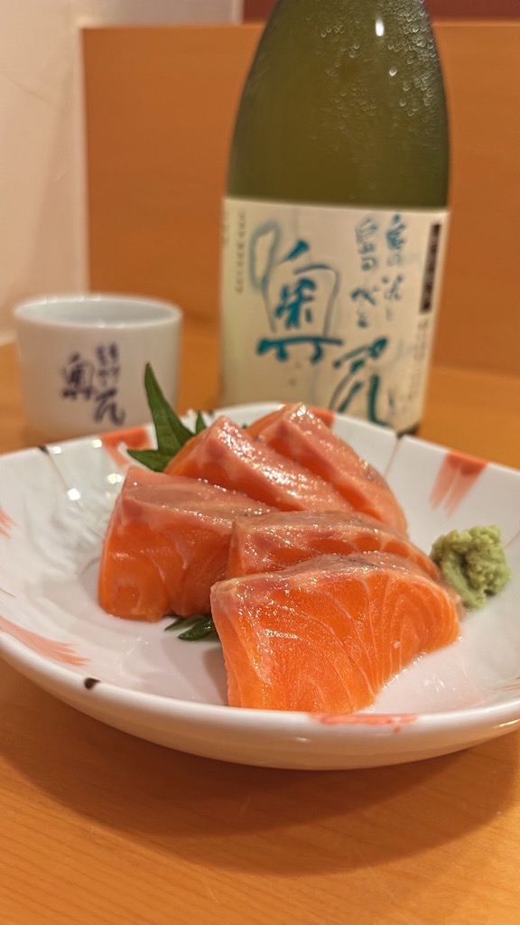 ■お刺身の向こう側に見えるのは奥尻のお酒??